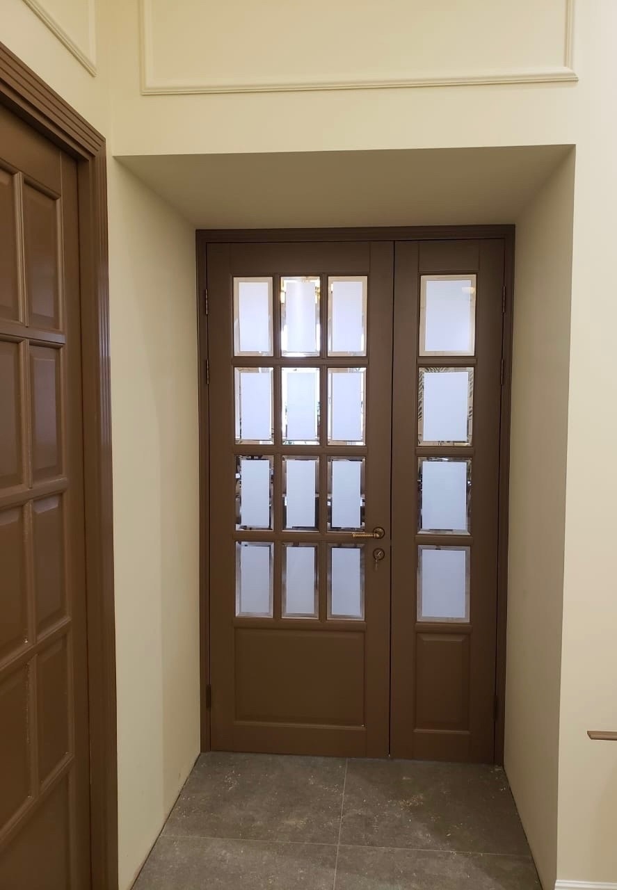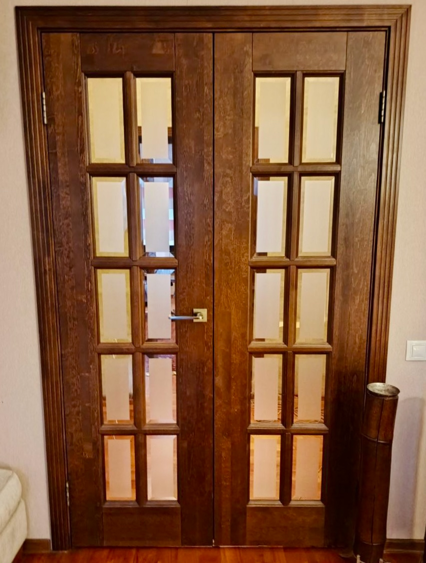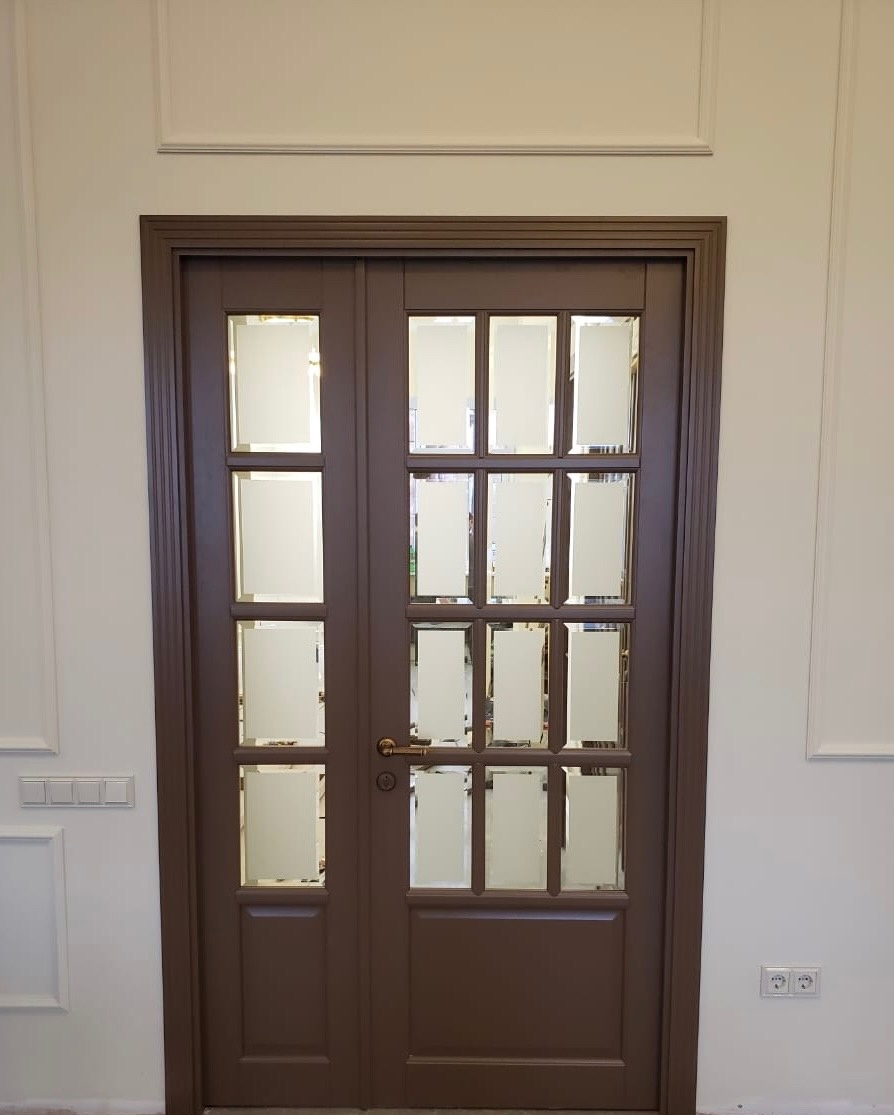 - Сочетание с фацетом — особый шик. Обработанные грани стекла создают игру света, делая дверь настоящим арт-объектом.